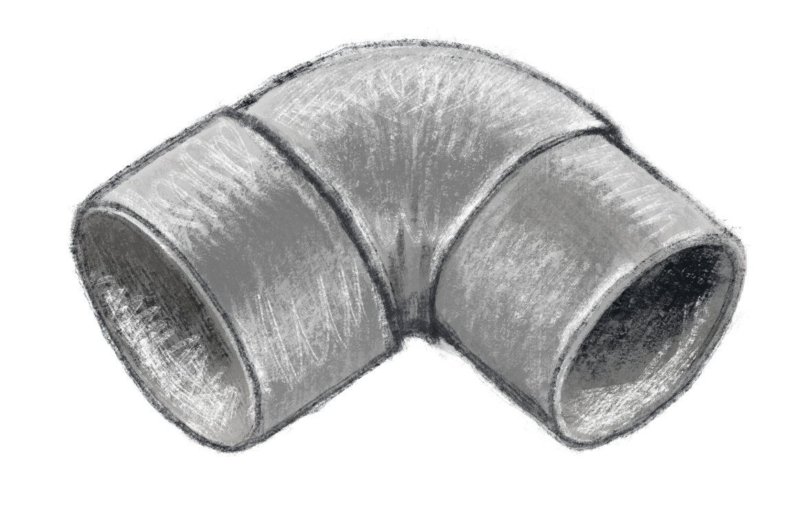 2 Koop twee pvc-buizen met een hoek van 90 graden en een doorsnede van 125 millimeter, met aan één uiteinde een mof (verdikte rand).
