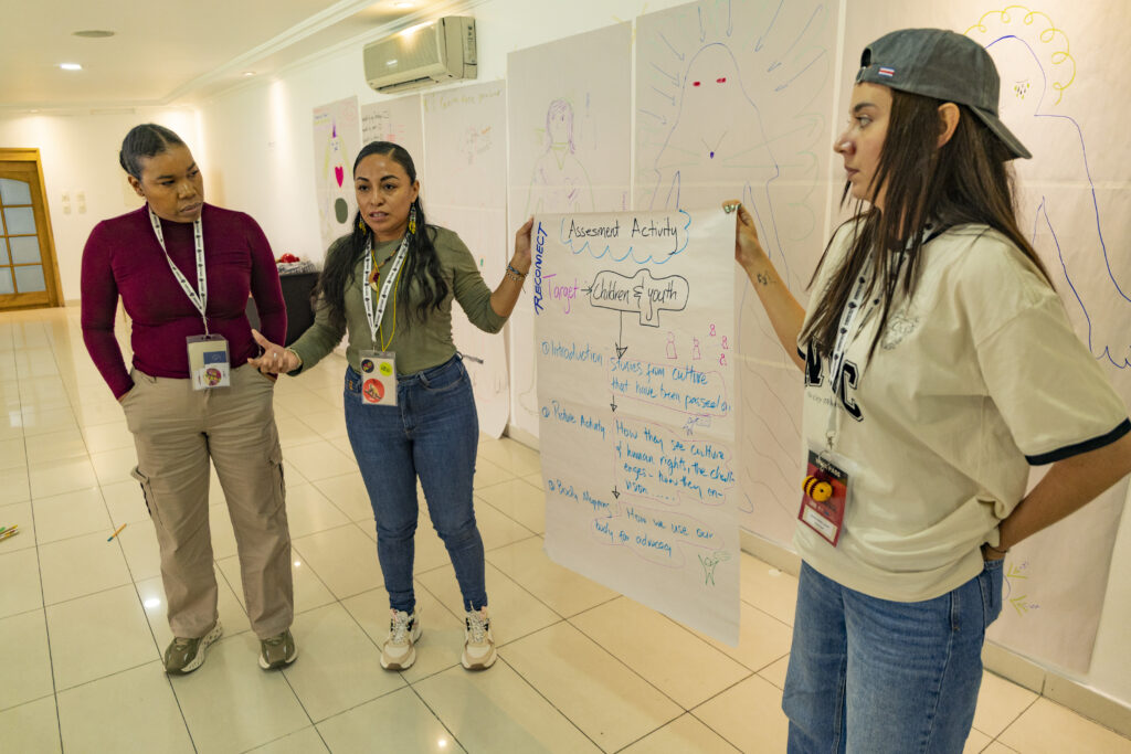 Kahina abayatara en Ikihie geven een presentatie tijdens een workshop.