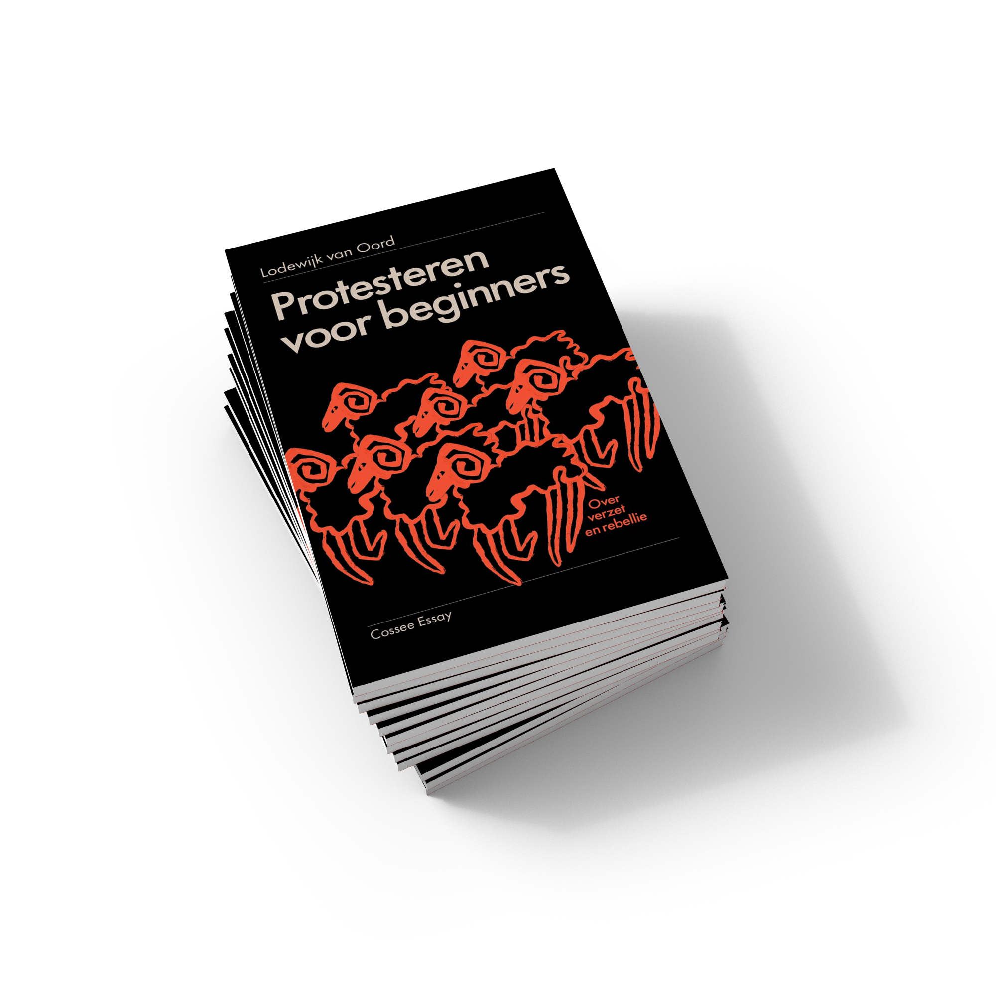 De kaft van het boek Protesteren voor beginners. Een zwarte omslag met een aantal rode, getekende, schapen.