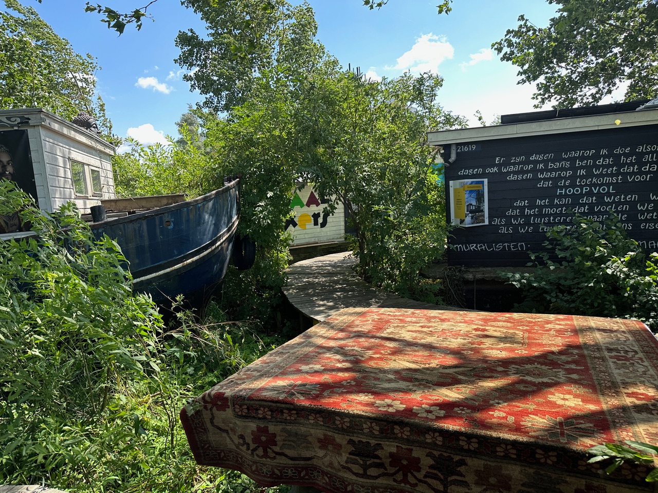 “Bij Zoöp De Ceuvel (een duurzame broedplaats voor creatieve en sociale ondernemers in Amsterdam – red.) kwam elk jaar een zwanenkoppel broeden aan de rand van het caféterras. Broedende zwanen kunnen behoorlijk agressief zijn, dus dat was onhandig. Van wilgentakken hebben de mensen van De Ceuvel een soort grote koepel over dat zwanennest gemaakt, zodat de zwanen daar rustiger kunnen broeden. De Ceuvelaars maakten ook een bijenburcht (een nestelplek voor wilde bijen – red.) en een zoetwatervijver met flauwe oevers, waar insecten kunnen drinken zonder te verdrinken. En bomen spelen er een belangrijke rol. Het voormalige havengebied was zwaar vervuild, maar is nu veranderd in een groene oase. Sommige bomen, zoals wilgen, zijn bewust geplant omdat ze de bodem kunnen helpen schoonmaken, een techniek die ‘fytoremediatie’ heet. Dat is een heel ander uitgangspunt dan vervuilde grond afgraven of verhitten, waarbij al het bodemleven verloren gaat.